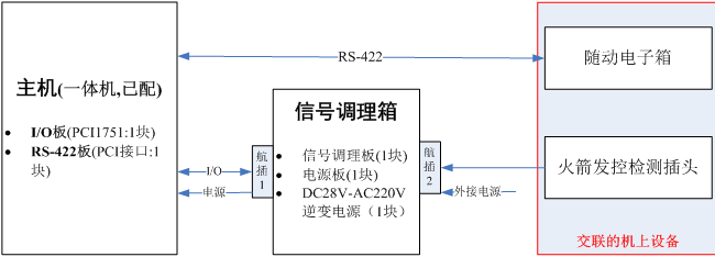 火箭/检查仪“调理箱与机载设备及主机接线关系框图”